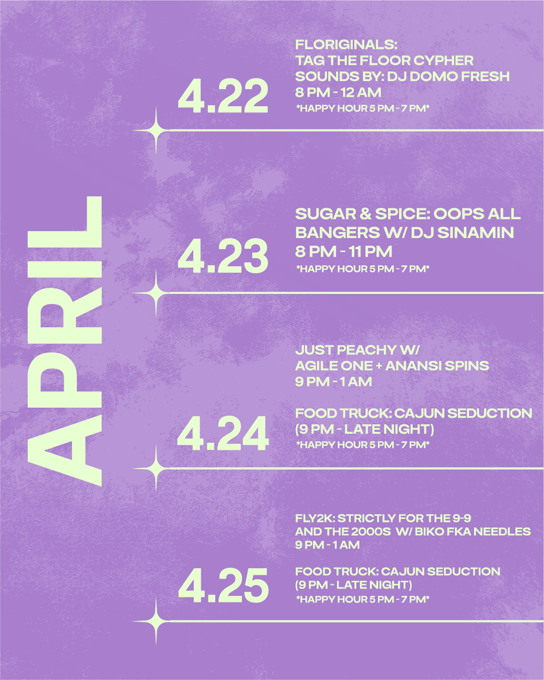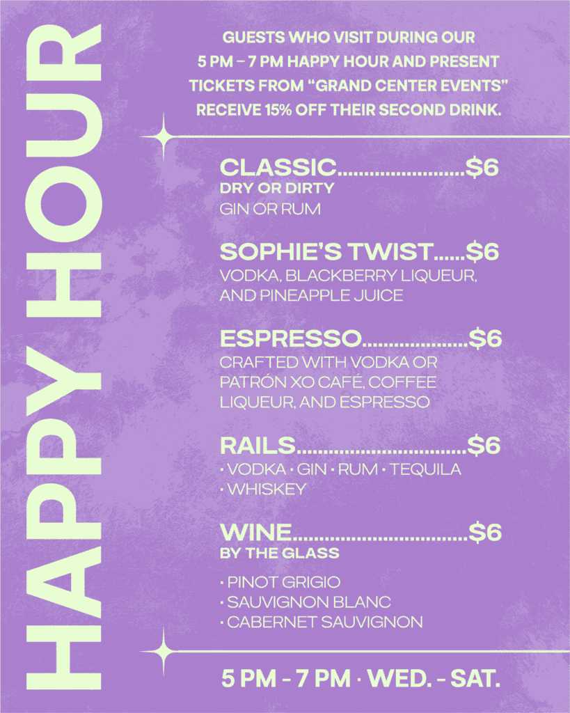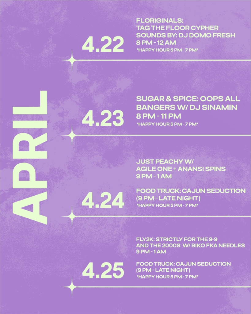 Sophie’s Artist Lounge and street art gallery is an immersive art lounge servicing up high fidelity audio-visuals with a creative cocktail-focused menu. Immerse yourself in our street art gallery and let our Resident DJs provide the sonic pleasure for your night on the town. Open Wednesday- Saturday from 1:00 PM- 1:30 AM.
