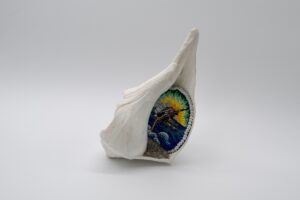 Janie Stamm was born and raised on the edge of the Everglades in Broward County, Florida. She is a craft-based artist currently residing on the western banks of the Mississippi River in Saint Louis, Missouri. Her work focuses on preserving Florida’s environmental and queer history in the face of climate change through embroidery and assemblage.